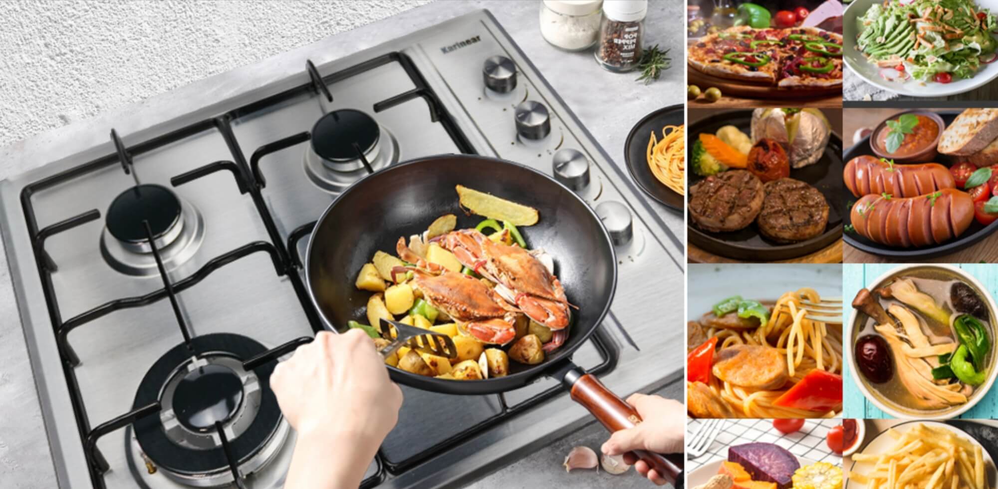 • 4 High-Efficiency Burners: Sizzle & steam! 2x 5971 BTU burners, 1x 11259 BTU burner, 1x 3412 BTU burner for perfect stews, fries, bakes, boils.