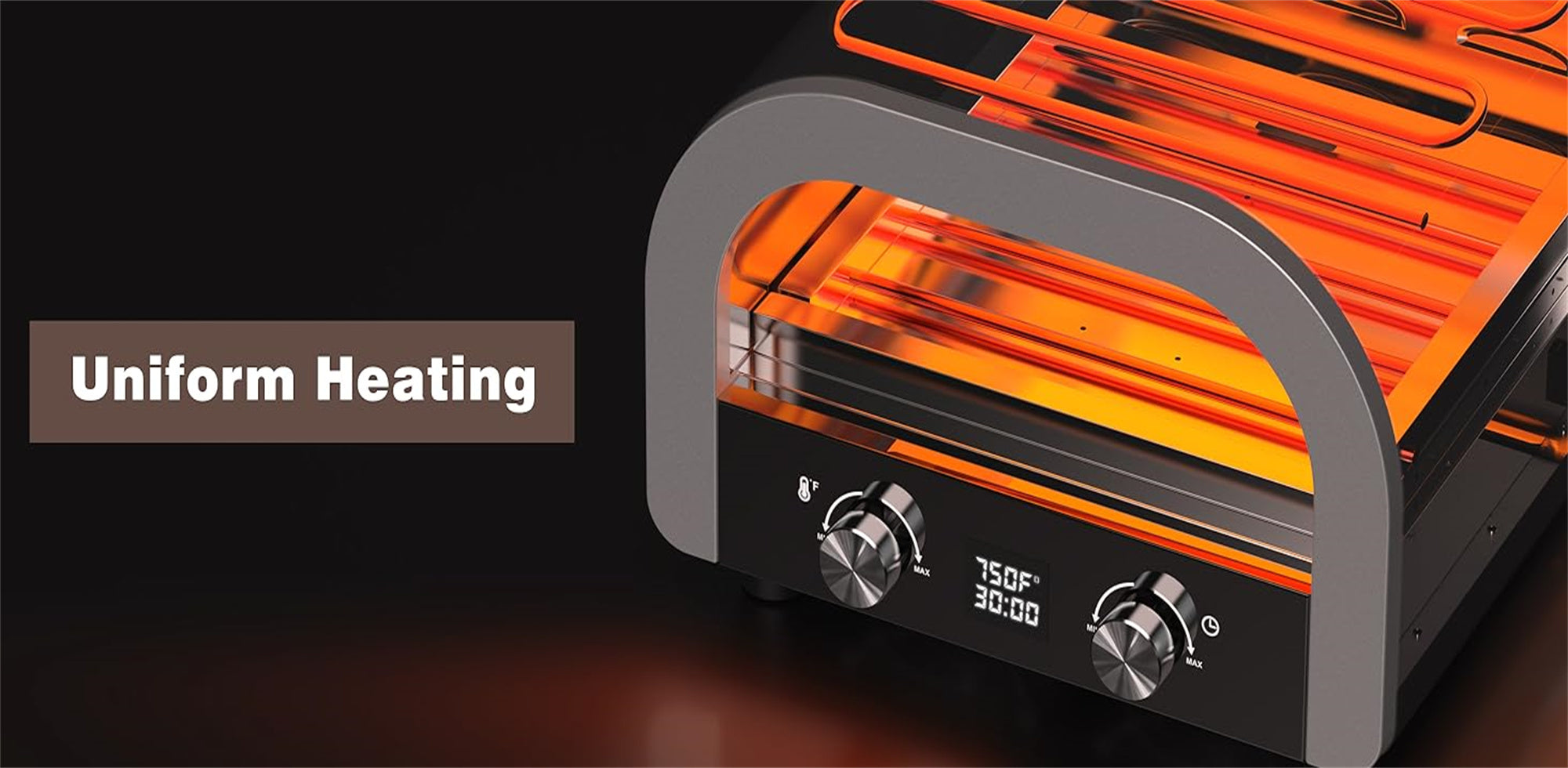 This countertop pizza oven is very simple to use with just two knobs to adjust the temperature and time respectively, no extra complicated functions.