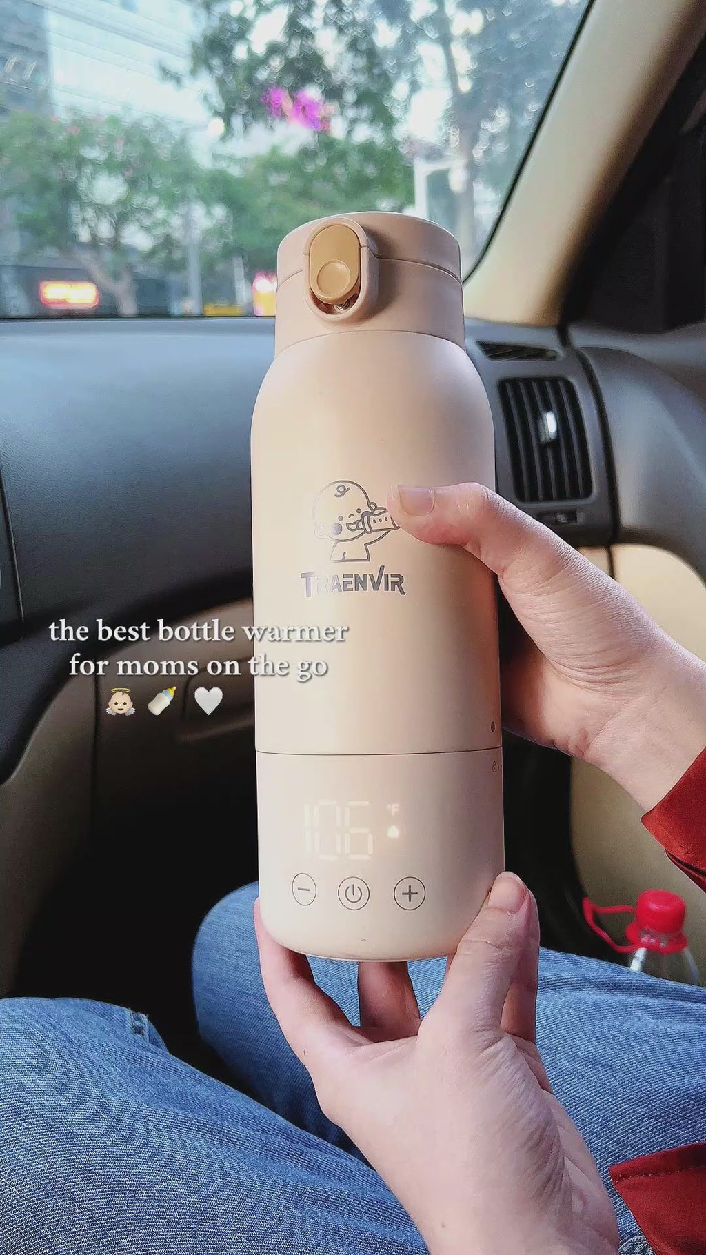 【Fast & Spacious 17.6 oz Warmer for On-the-Go Families】Portable bottle warmer is designed for speed and convenience. It rapidly heats 4 ounces of milk in just 5 minutes, so your little one never has to wait. Featuring a large 17.6 oz capacity, this travel bottle warmer eliminates the need for constant refills, holding enough for several feeds whether you're at the park, on a road trip, or running errands. The durable silicone handle provides a secure grip or can be easily attached to a stroller or backpack, making this the ideal milk warmer for travel and an essential accessory for any outing.